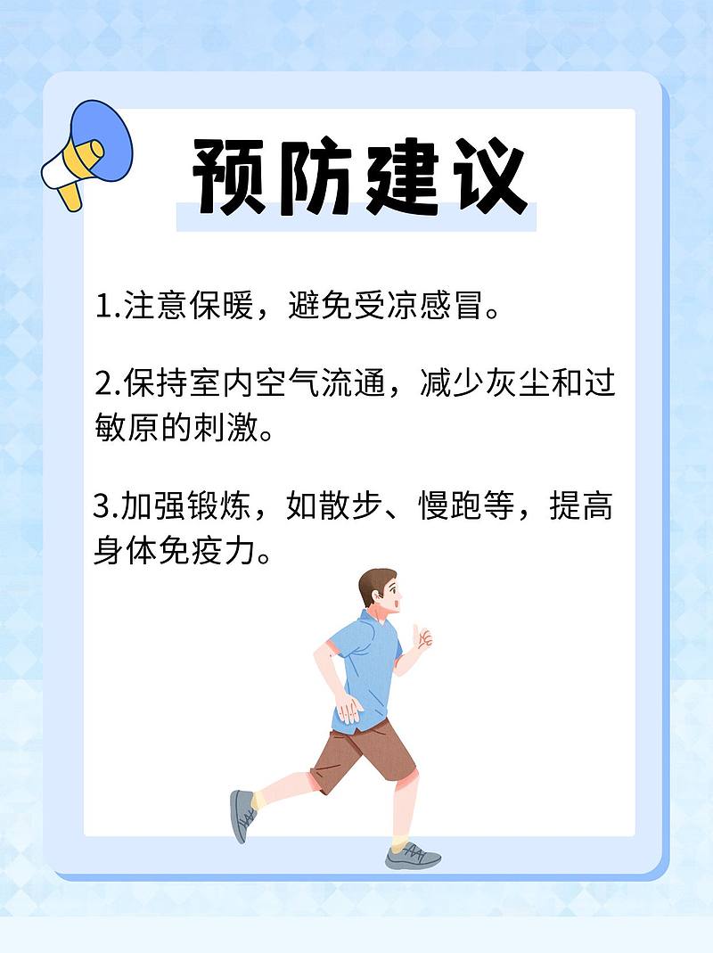 [比心]除了药物治疗,我还向他强调了预防措施的重要性。我告诉他要注意保暖,避免受凉感冒;保持室内空气流通,减少灰尘和过敏原的刺激;还要加强锻炼,如散步、慢跑等,提高身体免疫力。
